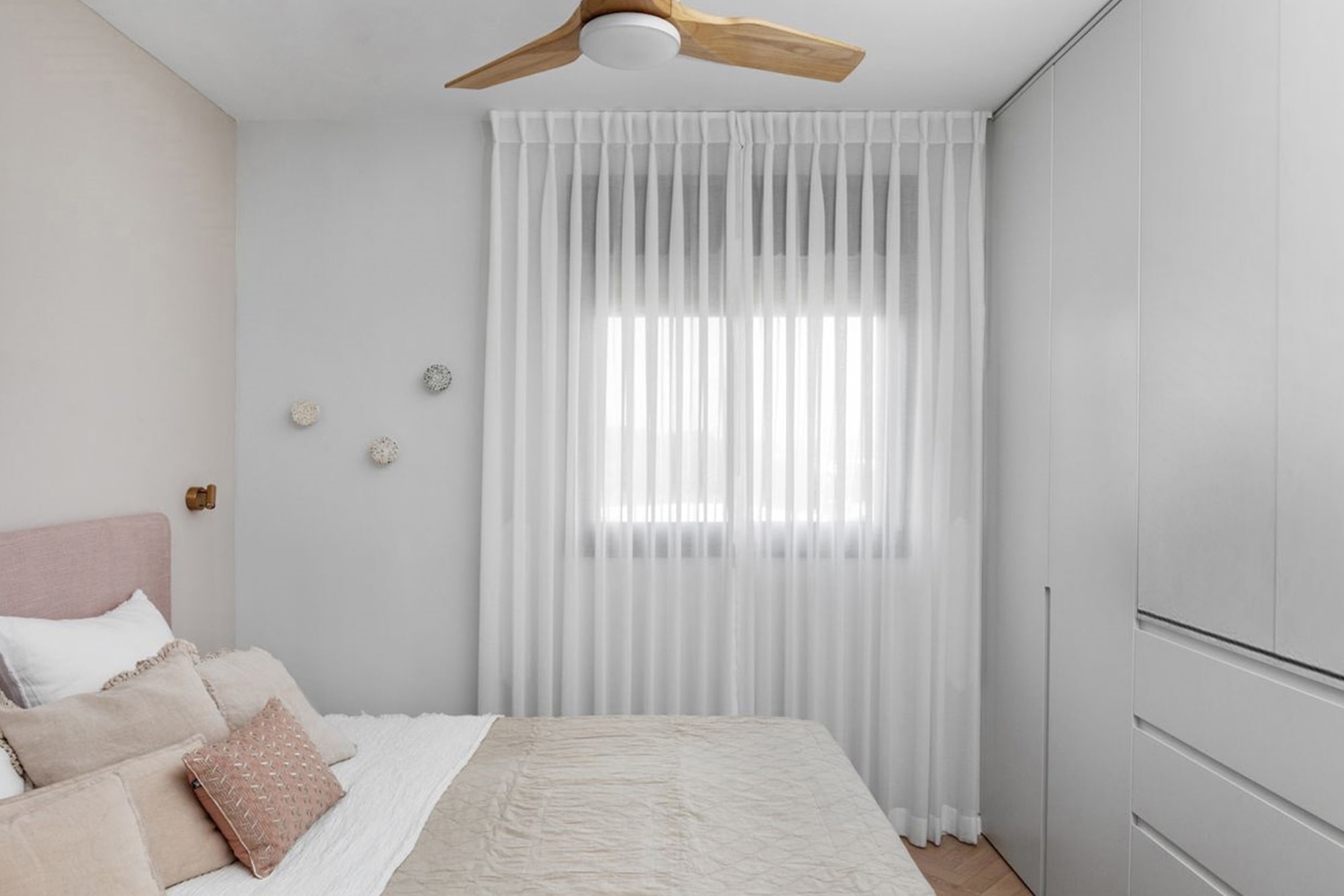 וילון מבד שקוף וקליל עם מרקם עדין מאוד המוסיף יופי ורכות לחלל בו הוא מותקן ומדגיש את העיצוב שלו.